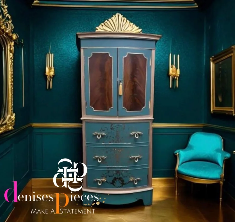 Queen Anne Vintage Wine cabinet with working light fixture.